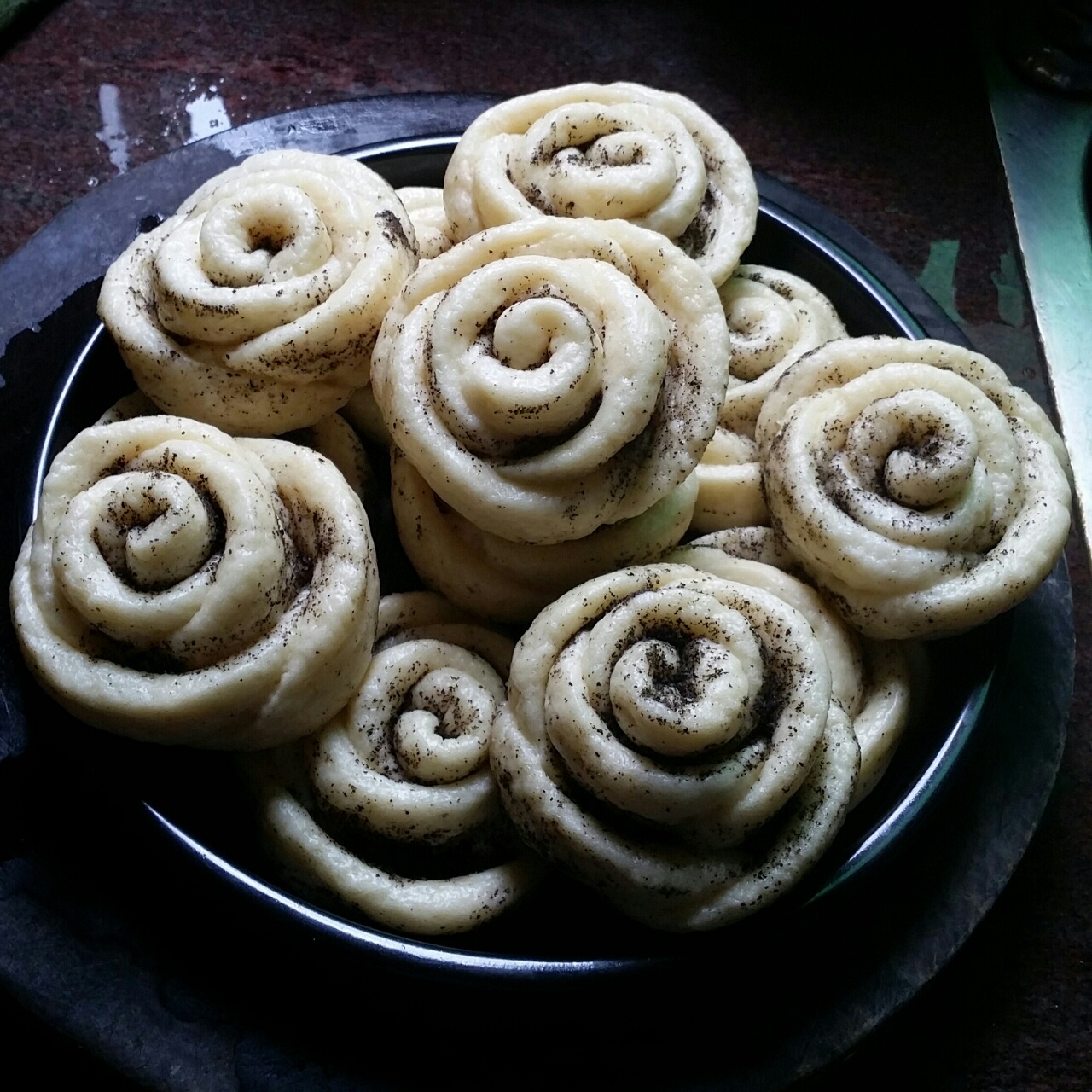 今天整成玫瑰花样,就没有刷玉米油了,直接撒些芝麻粉上去,也没加糖了,口感偏甜的朋友还是要在芝麻加点糖更合适~#晚餐•20...