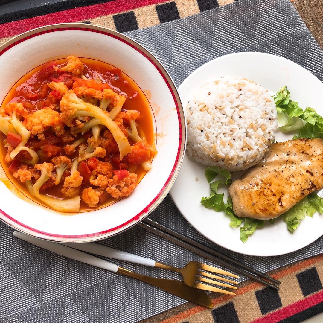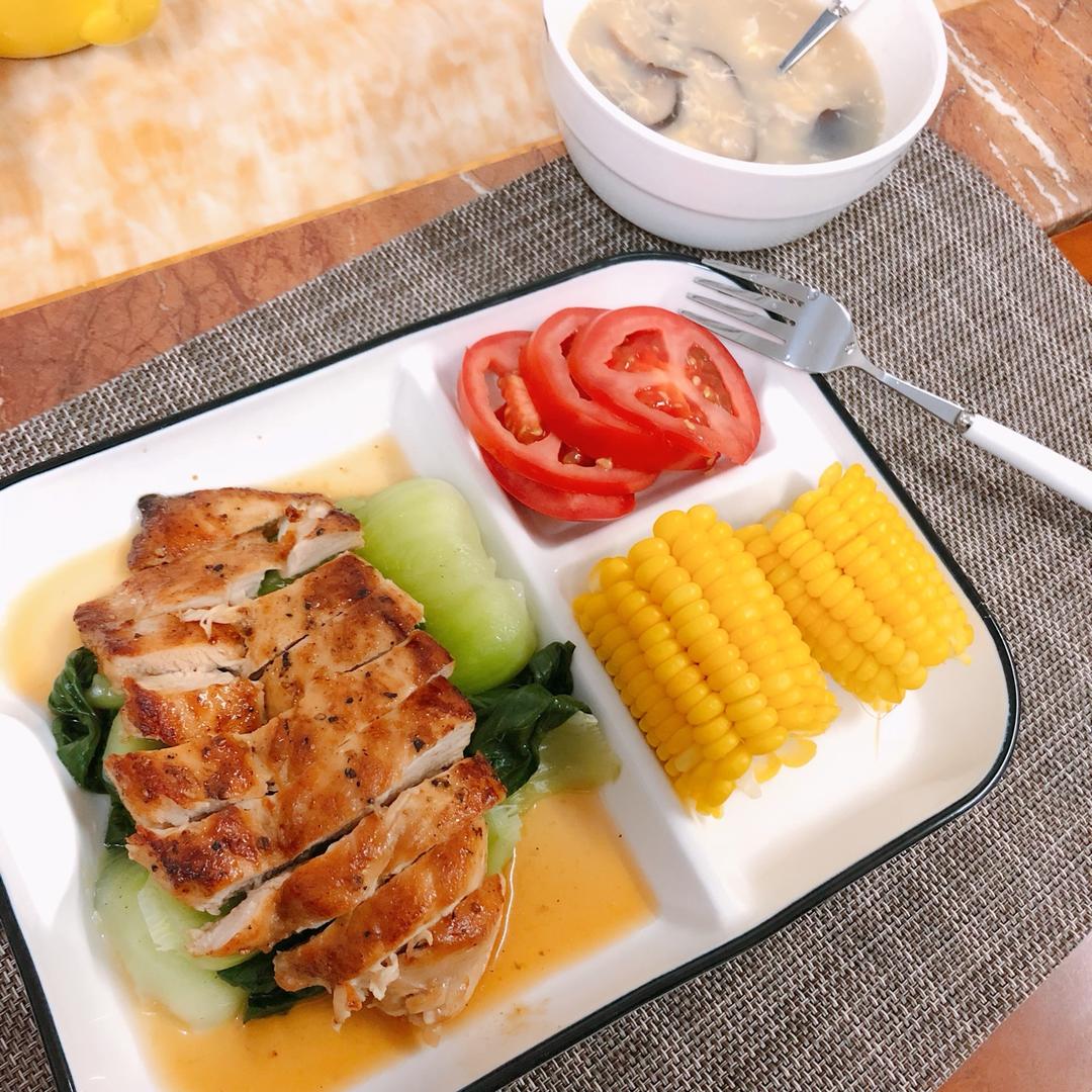 香煎鸡胸配上番茄,减肥不减餐😁