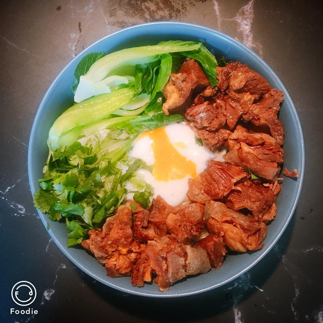 外卖的牛肉➕外卖的面➕自己焯的蔬菜➕自己做的小饮料