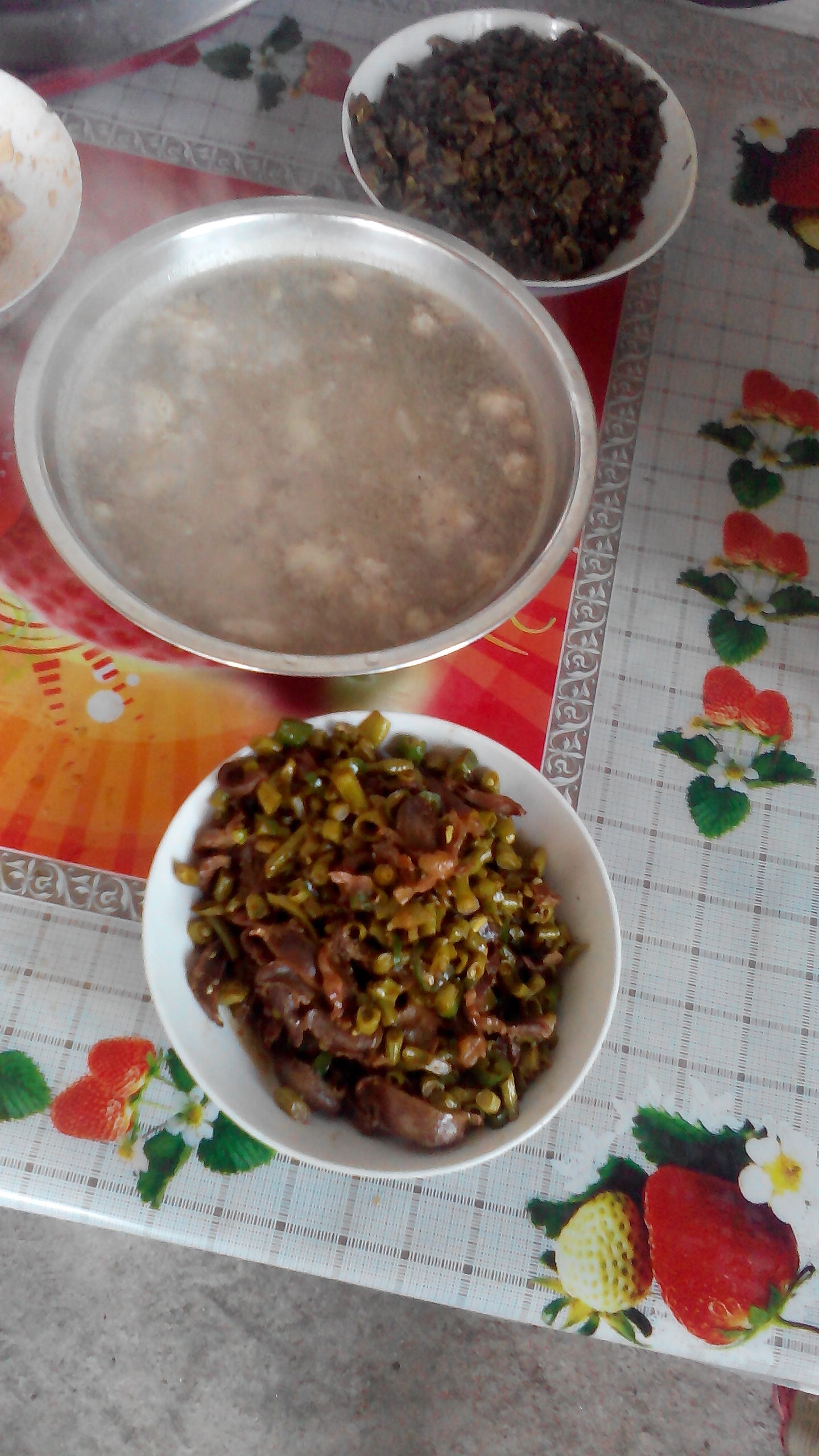 我做的酸豆角超鸭杂和肉汤。