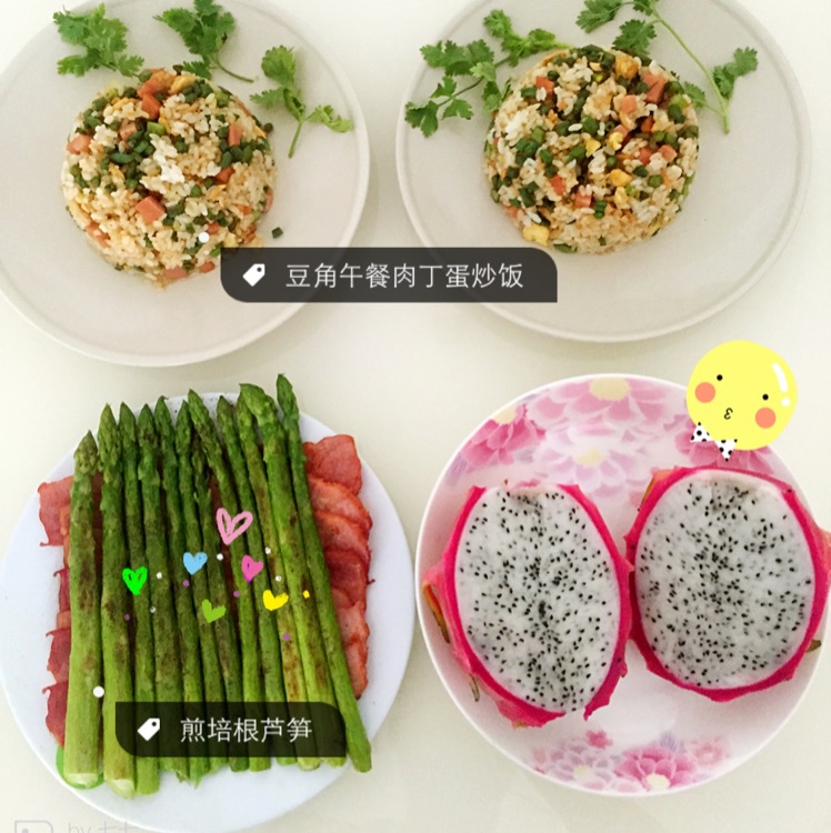 整个番茄饭、水果沙拉、水果茶、炒四丁