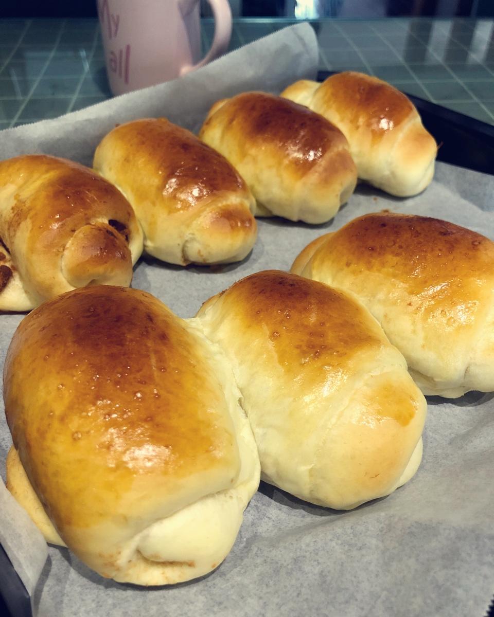 ! 经典黄油卷!昨天晚上揉的面团,冰箱过夜,早上继续一发,烤箱二发,天冷又没有发酵箱做面包好...