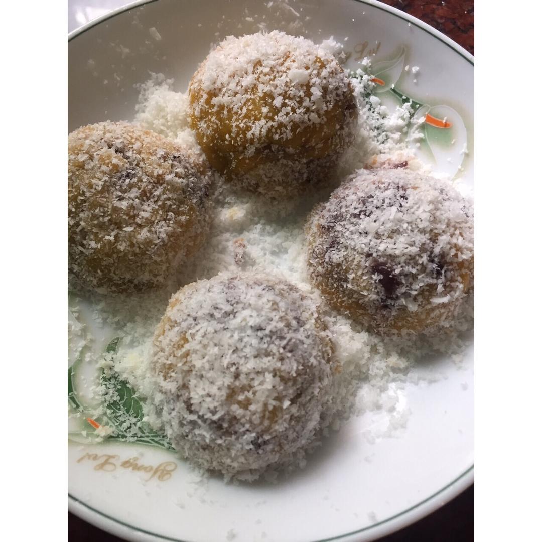 哒哒哒,紫薯红豆糯米滋〰然后,不够甜,下次下多点糖