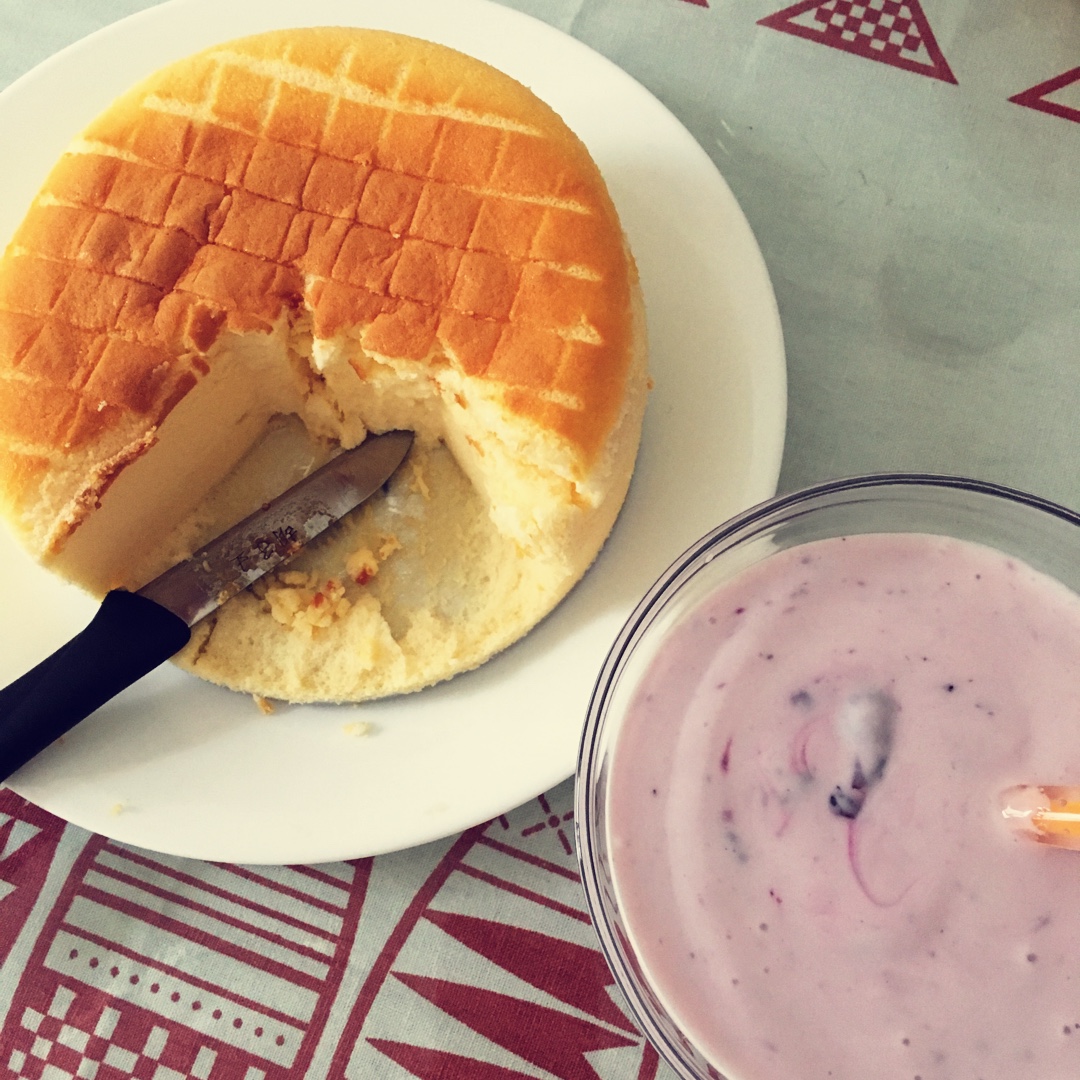 蓝莓酸奶配酸奶蛋糕 宝宝喜欢吃☺️因为是自己做的酸奶没有糖 所以蛋糕加了5、6g糖 味道刚好