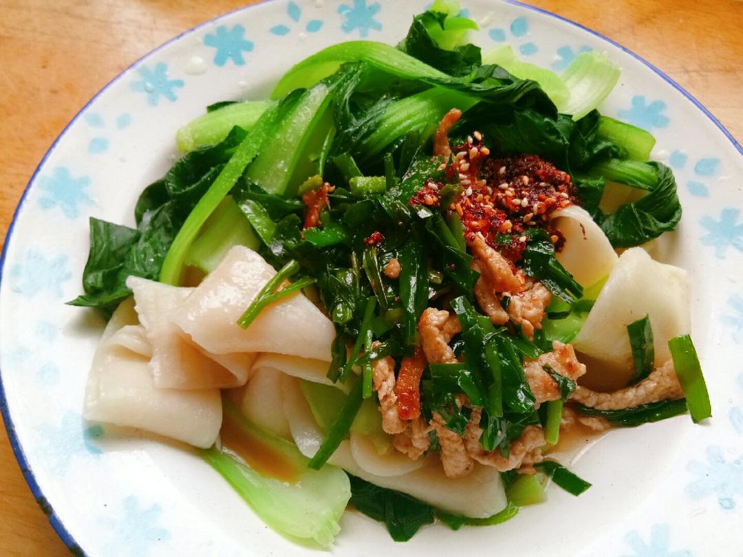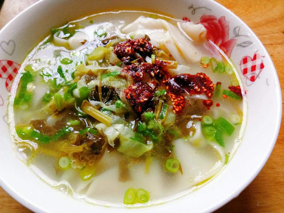 水萝卜韭菜腊肉汤面。