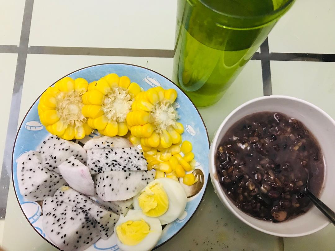 白心火龙果+玉米+水煮蛋+杂粮粥