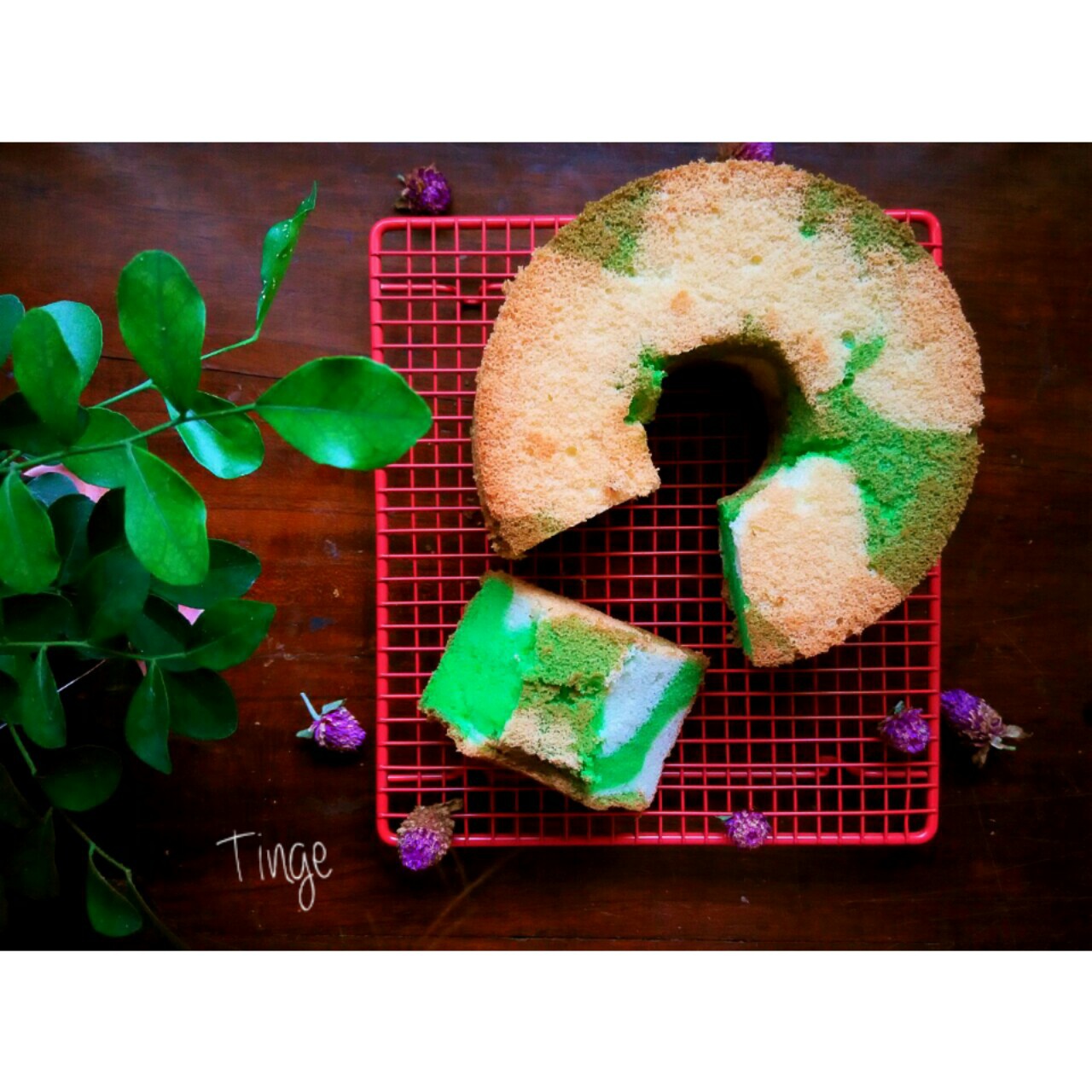 一半面糊加了斑斓精,然而手抖一不小心下...