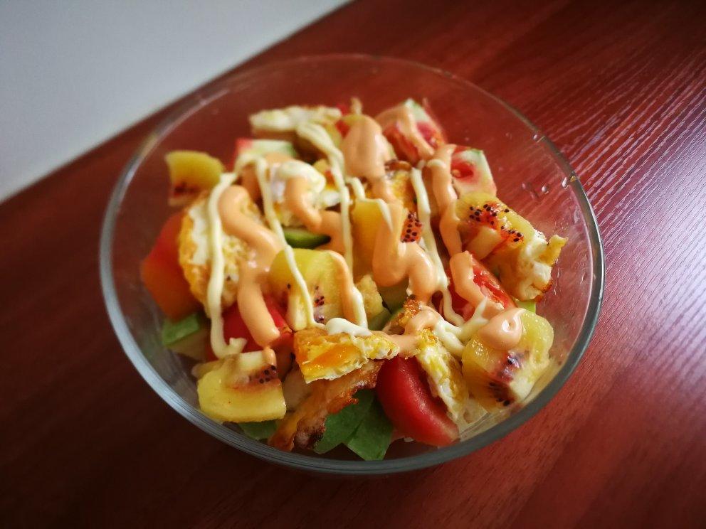 (西葫芦、航海造型意面、番茄、荷包蛋、红心猕猴桃)