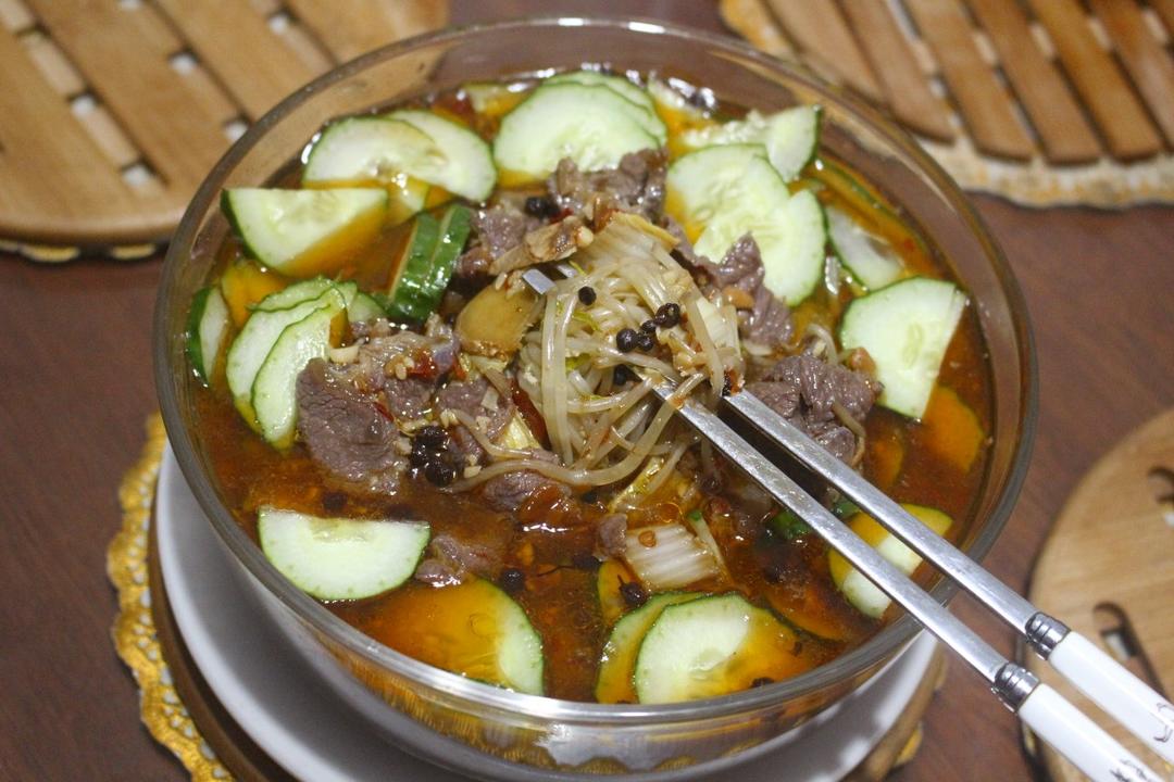 水煮牛肉(基底:绿豆芽、娃娃菜、黄瓜)