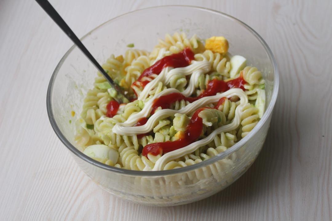 早餐:牛油果青酱拌通心面鸡蛋沙拉配极光酱汁...