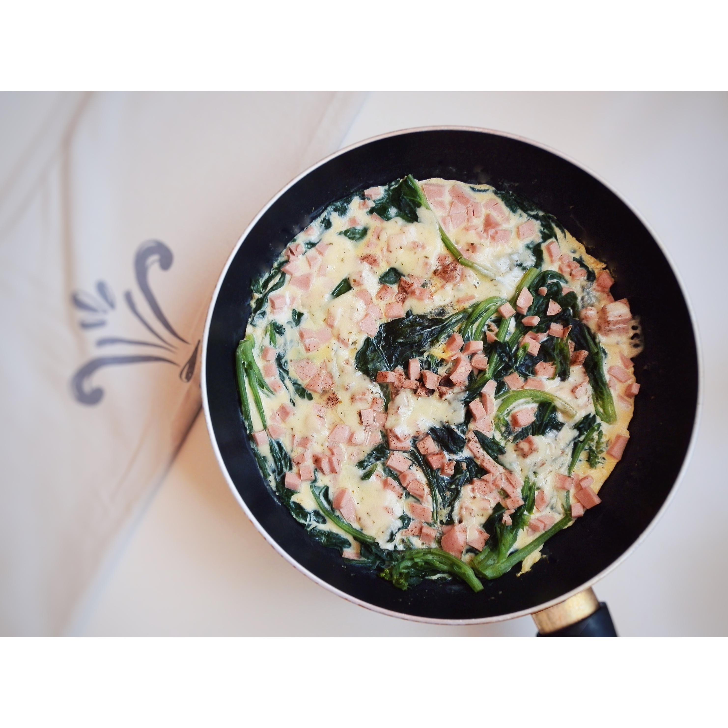 扔了点火腿进去,这个确实好方便,早晨匆匆忙忙的时候做一个又省时又省力的