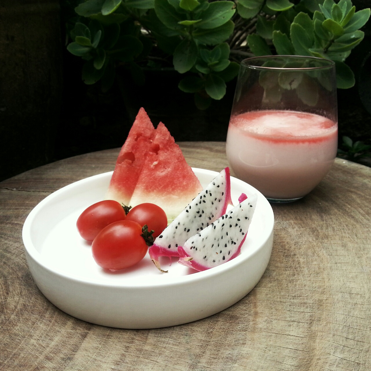 红色系水果早餐,西瓜牛奶好好喝,只是放久了分层不漂亮~