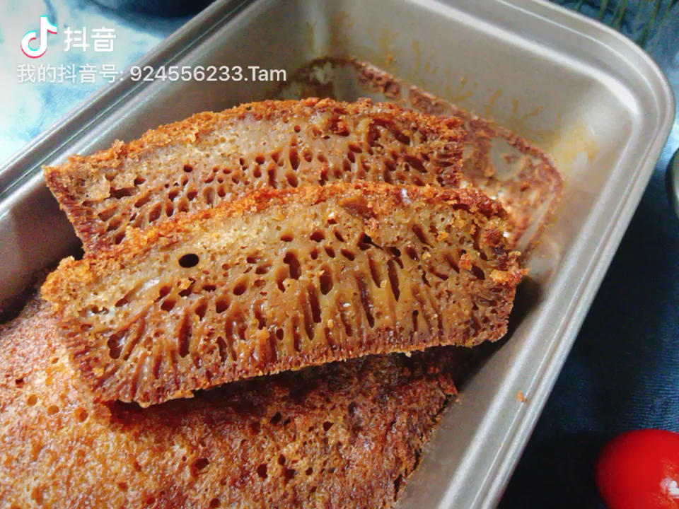 糖用了80克,玉米油用了100克,炼乳自己做的不是很甜,所以甜度刚好,就是油还需要适当的再减点,蜂巢很好看,也非常好吃,...