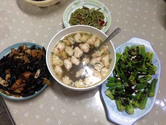 红烧内蒙菇,虾丸,白灼秋葵。开吃,开吃[色][色][色]