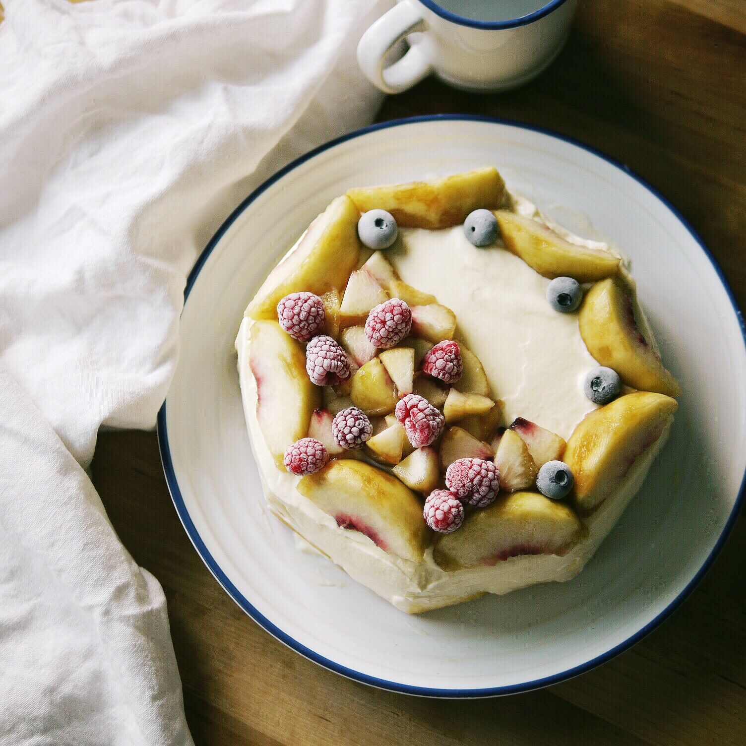 玩脱了塌方的奶油你们就无视好吗。蛋糕胚是蓝莓酸奶蛋糕,顶上堆的桃子是@