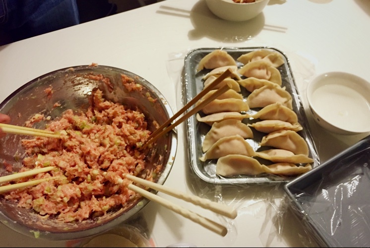 拿烘培用具第一次在美帝包饺子!太棒了这边买的肉都没放过血,包起来是粉嫩嫩的好萌233 味道很棒! #晚餐•2015年8月...