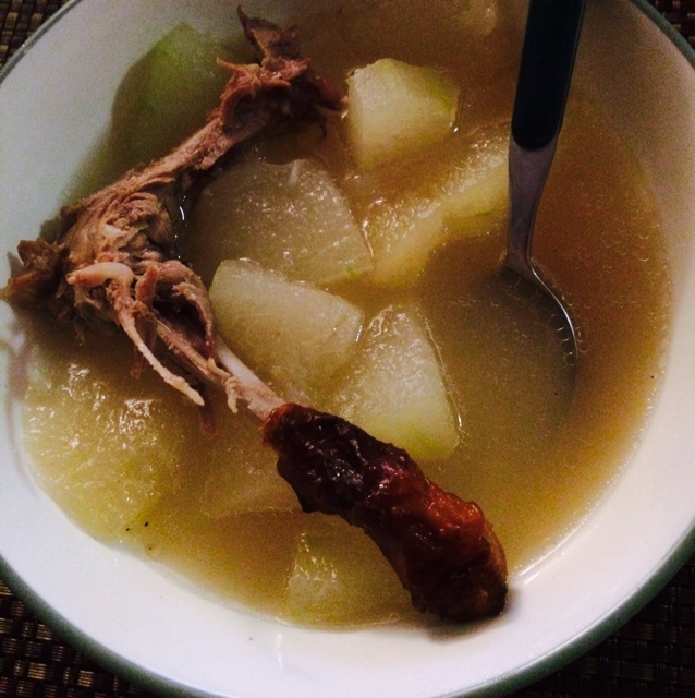 用烤鸭剔完的鸭架子做的,没有放薏米,很好喝~