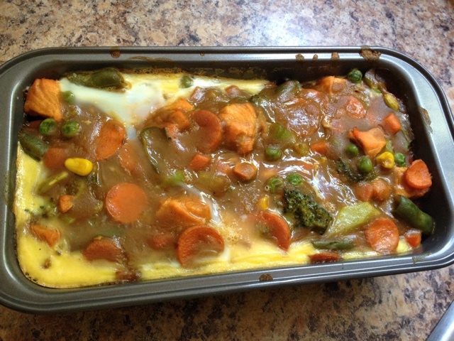 咖喱三文鱼鸡蛋蔬菜饭 本来打算上面铺一层芝士的 没想到我的芝士发霉了 :/ 只能不做焗饭了 不过这样味道也很好 #午餐•...