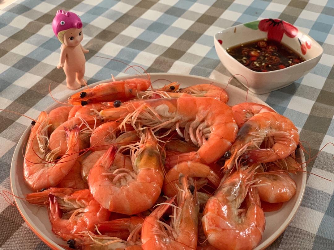 第一次做大白灼大虾,味道非常好,比买的划算多了,以后都自己买来做