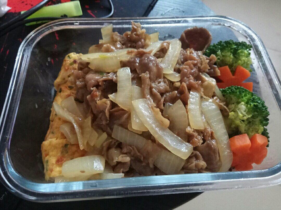 宝早餐:芝士厚蛋烧+蒸藜麦饭+山药燕麦糊+卤牛肉。
