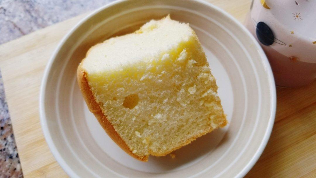 #六寸戚风# 很好的方子。之前一直用的3蛋,发现烤的时候满模,出来就塌腰而且顶部凹陷,中间还湿湿的,这次换了2蛋的,减了...