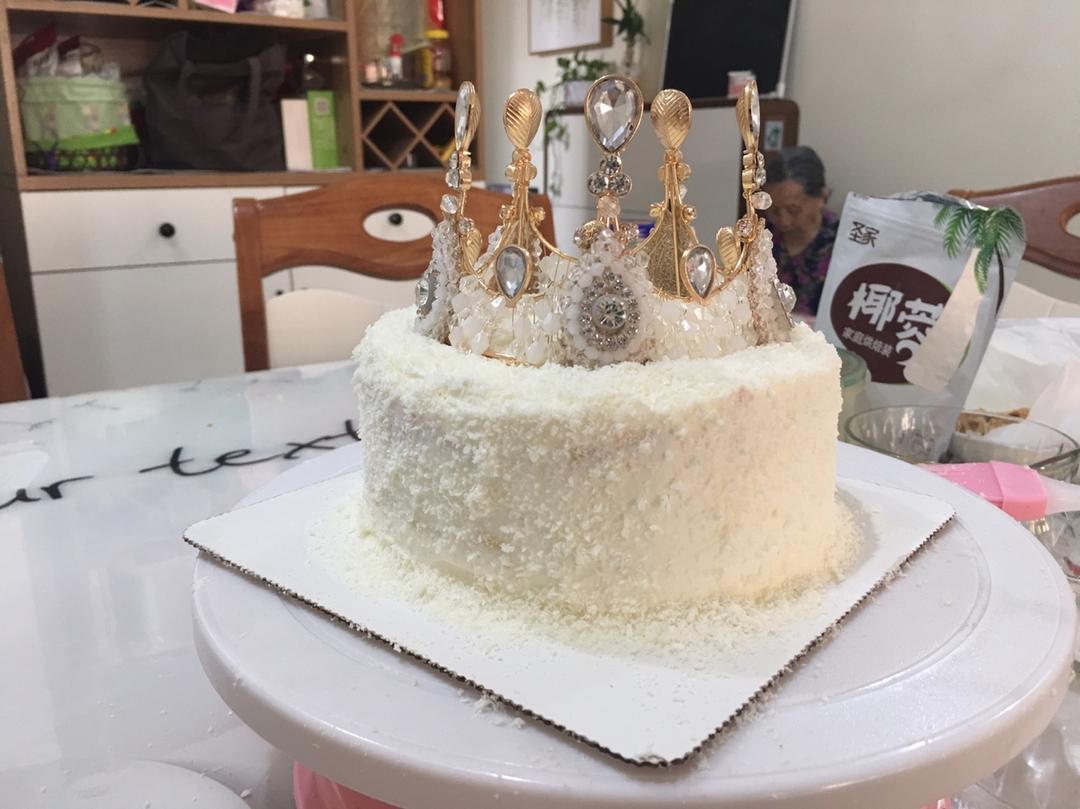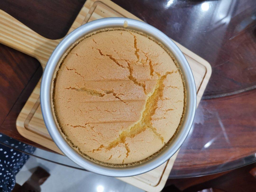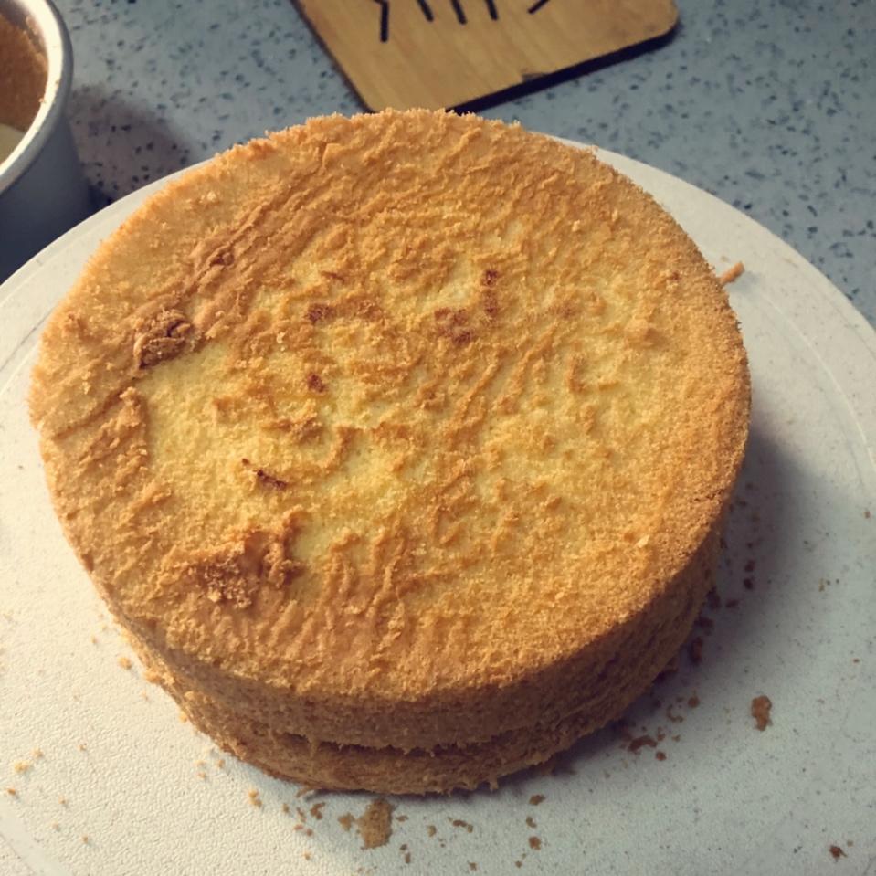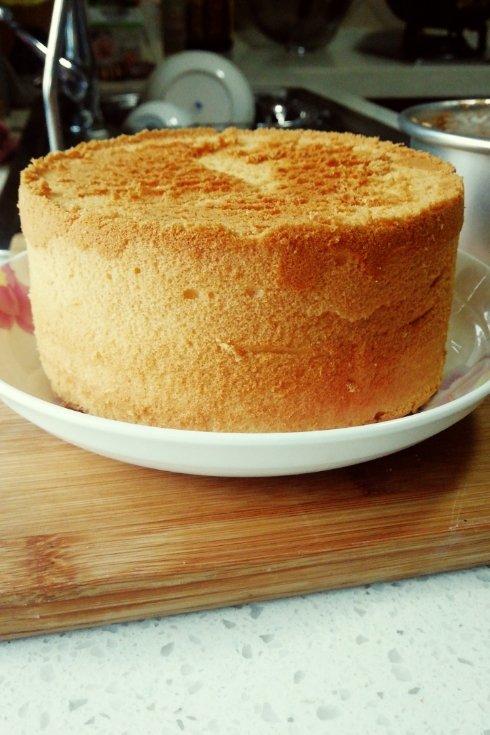 第一次做6寸的,老公生日刚好够两个人吃不浪费,是按作者写的8寸的一半的用量。不知道是什么原因,感觉微微有点水份过多的感觉...