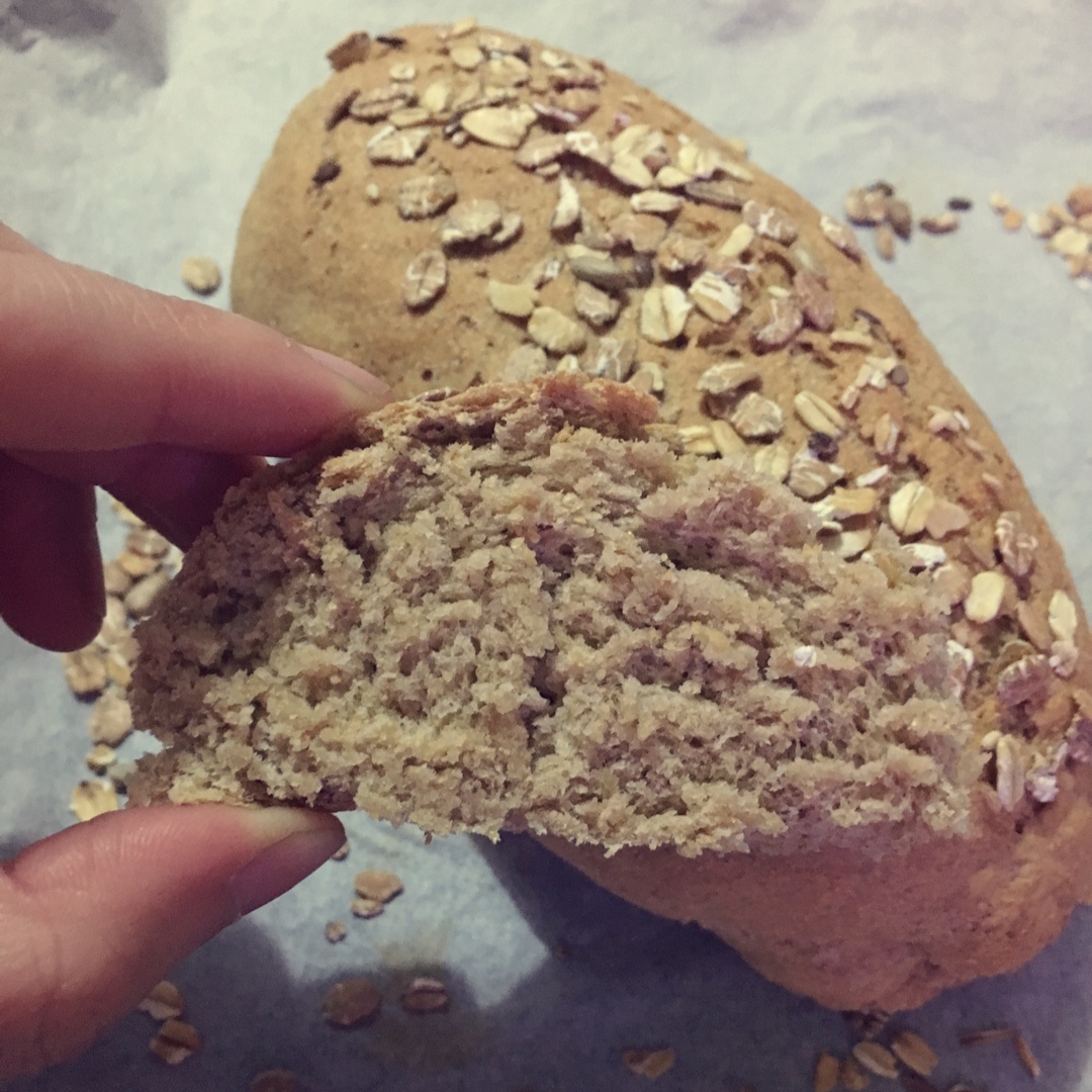 无油无糖减盐,用的小麦磨的全麦粉,减肥好伙伴。没发太起来,里面像馒头○| ̄|_,最后一次发酵时间不够,我果然太着急了。盐...