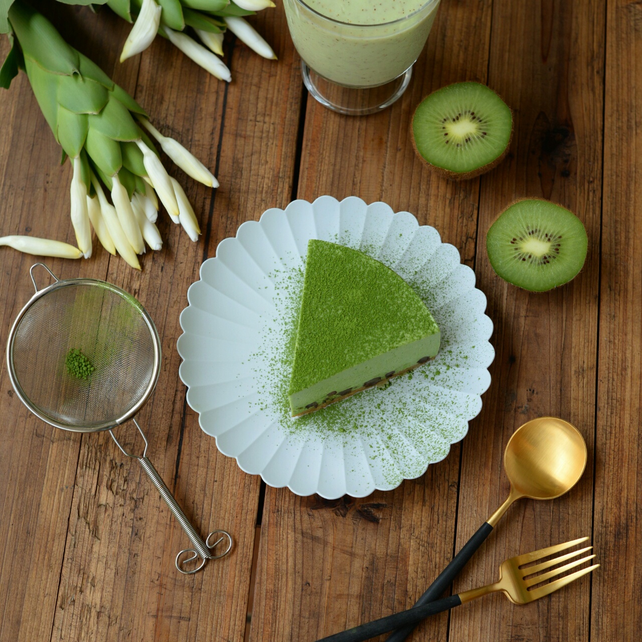 抹茶蜜豆冻芝士~切面图,撒上抹茶粉,搞定# 我在陶夏天遇见你#