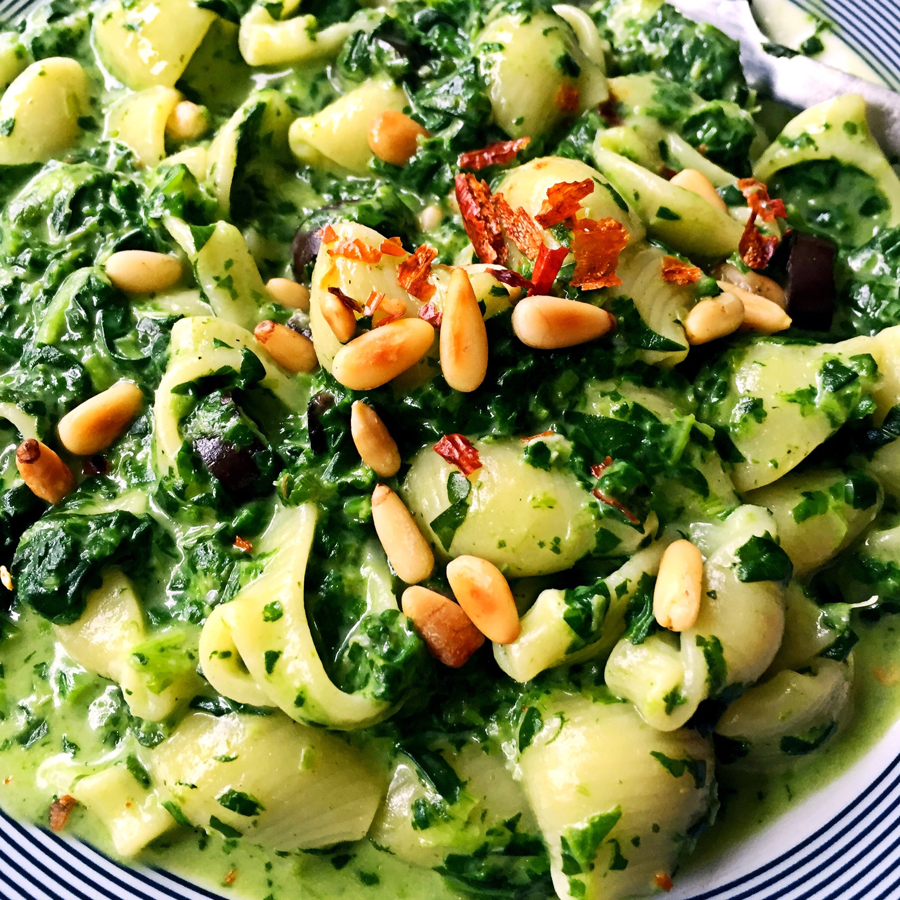 Pipe Rigate in spinach Gorgonzola sauce with chili flakes an...