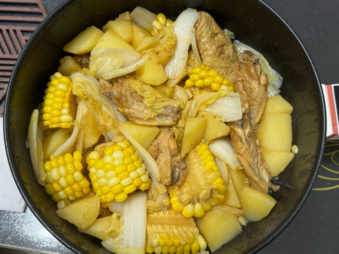 玉米土豆娃娃菜炖鸡翅