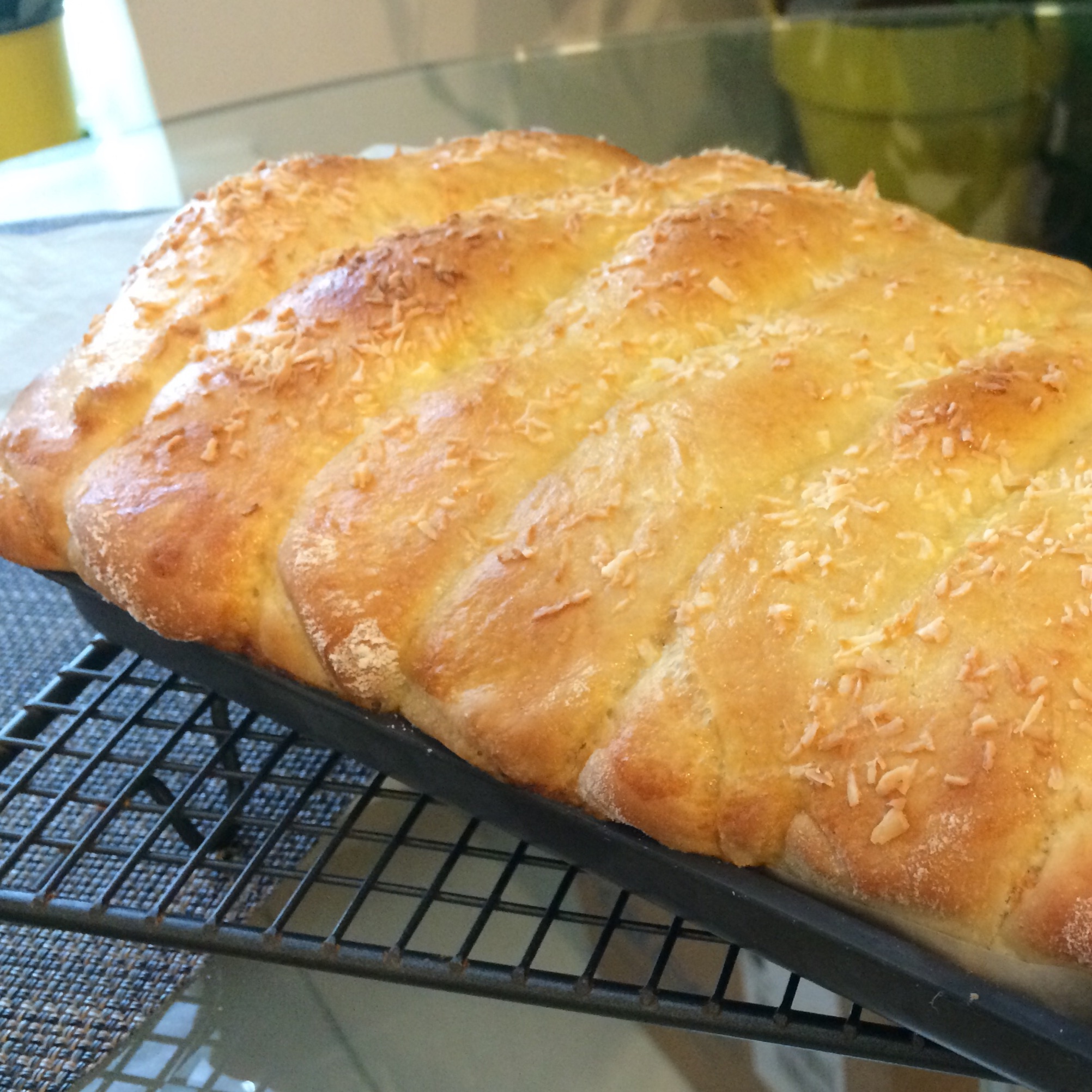 忘了放牛奶,就用淡奶油兑水,没想到也做成了,额外加了葡萄干,嘿嘿,很不错~