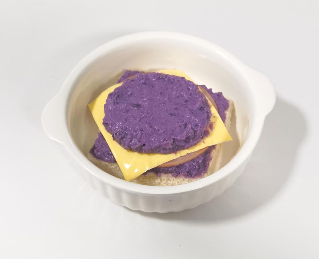 吐司+紫薯泥+火腿片+芝士片+紫薯泥