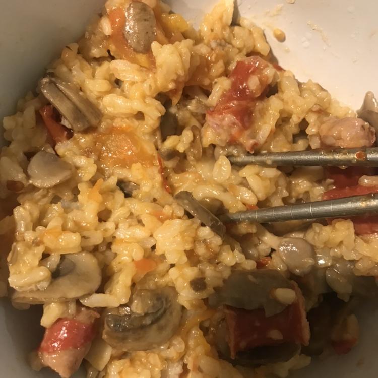 同样的配方,没有放橄榄油,没有做蒜蓉,夹了些腊肠😋