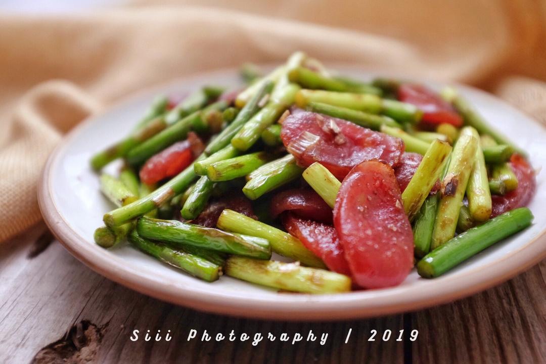 多年不吃蒜薹了 最近莫名想吃 然后越想就会越发现周围的人怎么都在吃蒜薹😅于是早晨买了蒜薹回来配合广式腊肠,不需要过多调味...