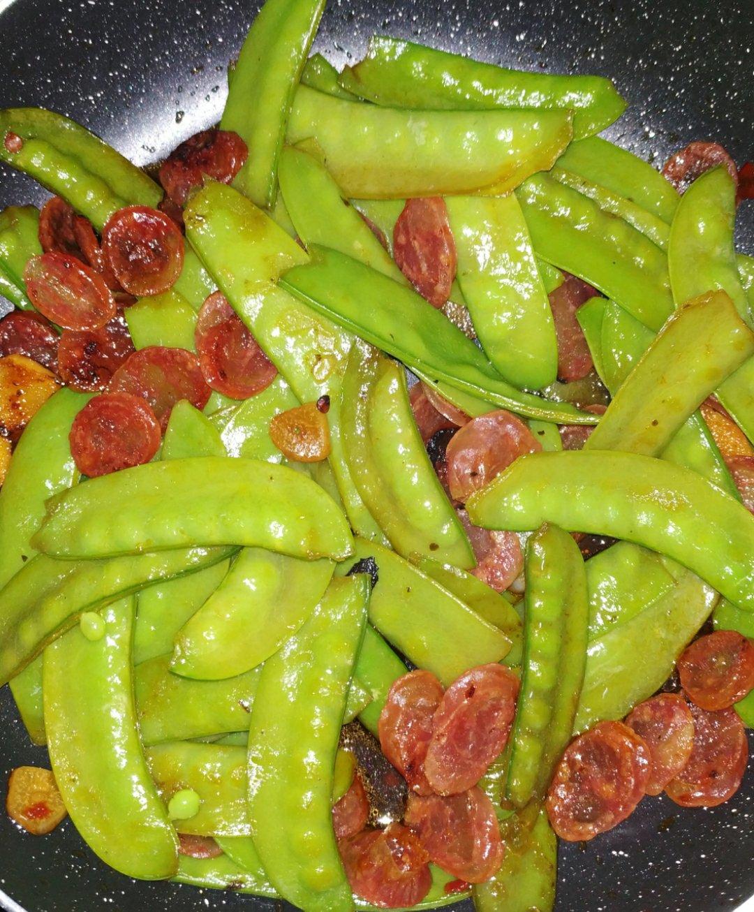 荷兰豆爽脆,腊肠有点甜,神仙cp~