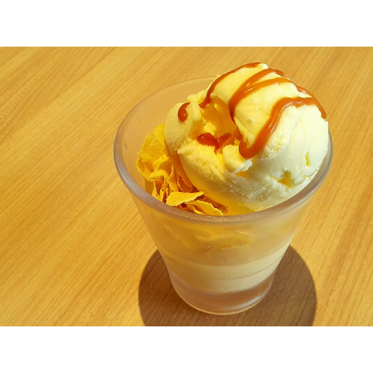焦糖酱+香草冰激凌+玉米片+布丁