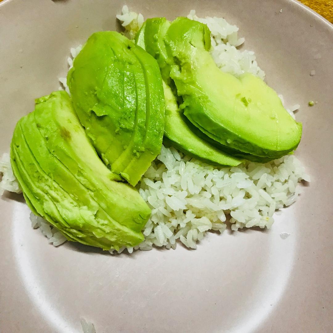 今天晚餐自己做了一个简单的牛油果拌饭
