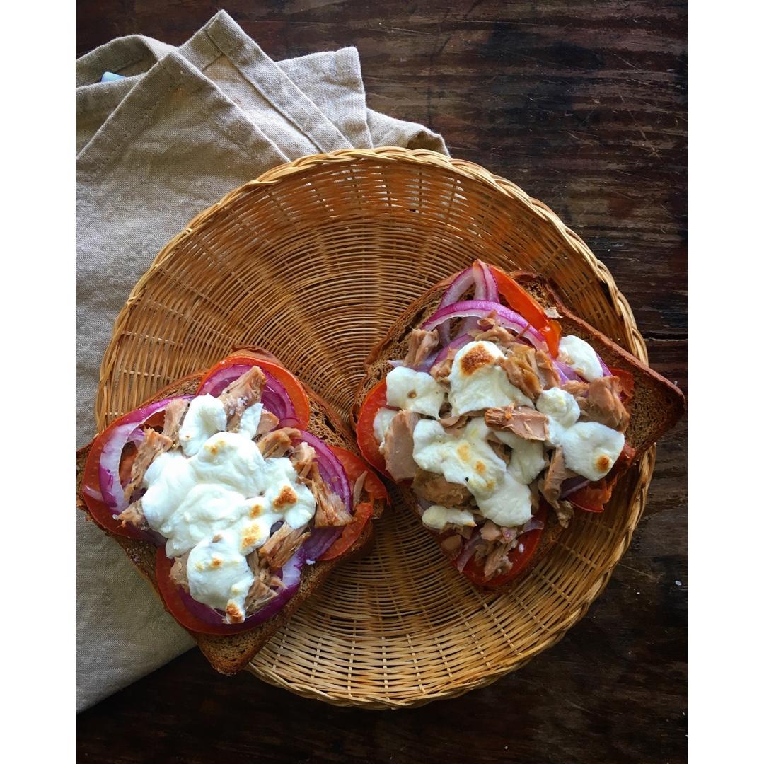 好久没做这个啦,依旧喜欢💕用的全麦吐司片,烤的时间适当缩短几分钟,底部脆脆的,洋葱和西红柿烤软了,放了金枪鱼,奶酪刚刚好...