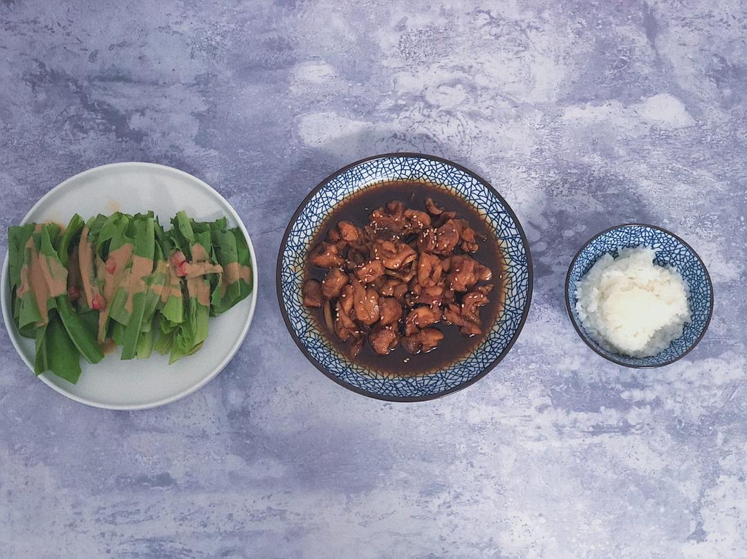 可乐鸡腿肉 麻酱油麦菜