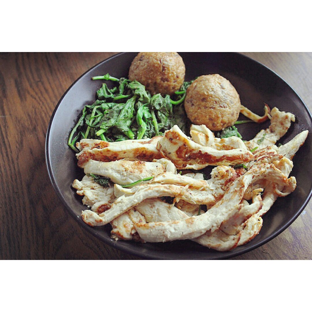 小龙说想吃原味的,就拿料酒+盐+白胡椒简单的腌了一下,铸铁锅煎的。龙师傅这次鸡胸切的好,薄且宽,稍微一煎就熟,不会发干,...
