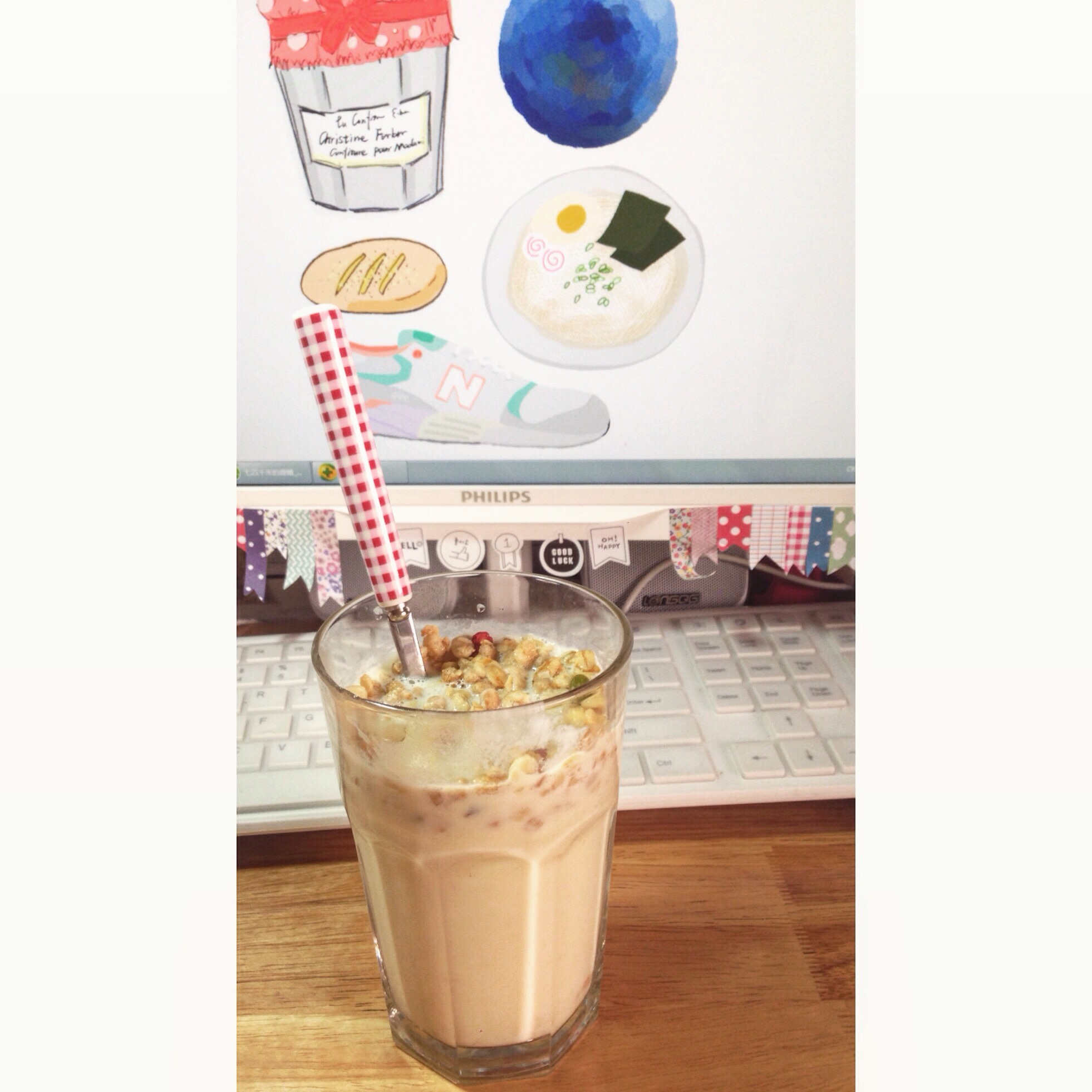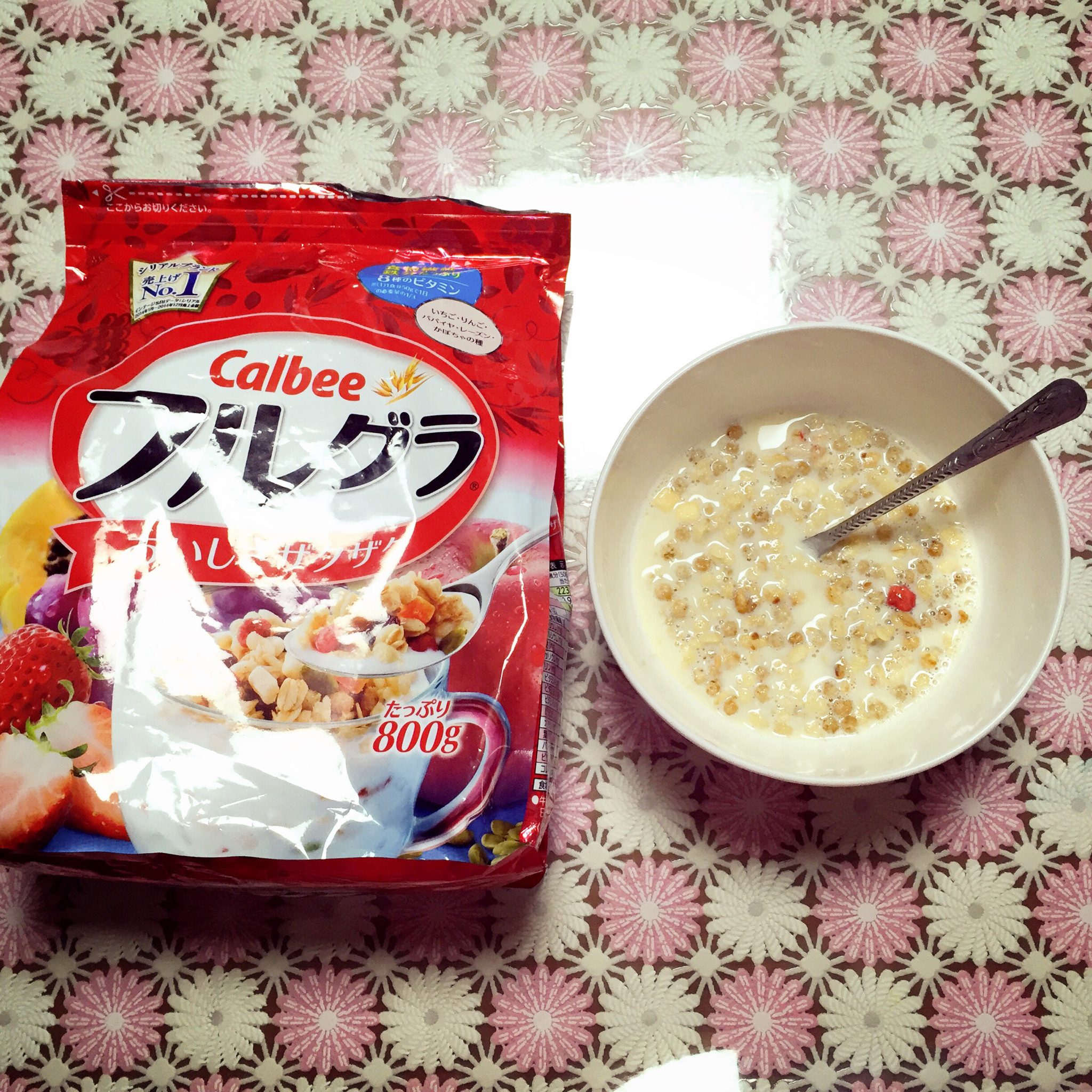 卡乐比配豆浆最赞!没有那么快吸收水份,用破壁机打的豆浆搭配很浓稠有嚼劲~不需糖正正好