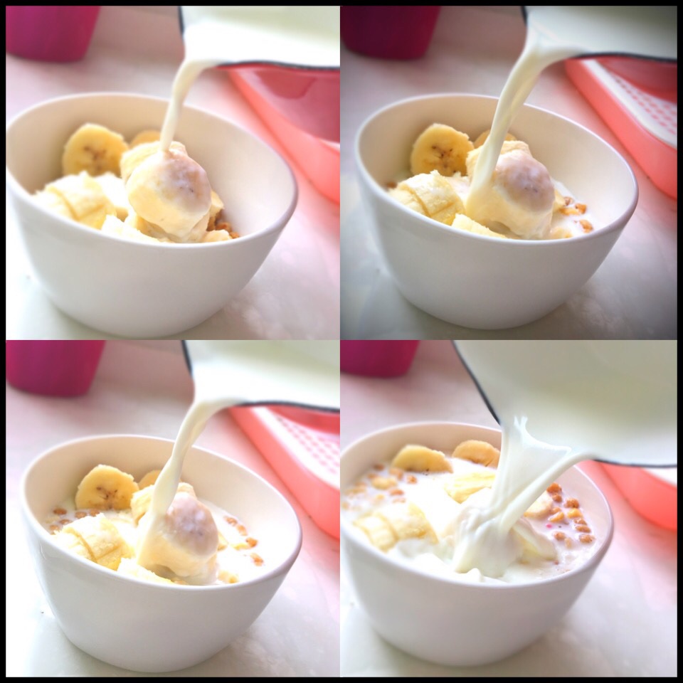 天太热了 都不高兴去烧菜 泡点卡乐比➕两根🍌➕一罐全脂牛奶 原谅我一个女生 然而吃得很多 #晚餐•2016年7月2...