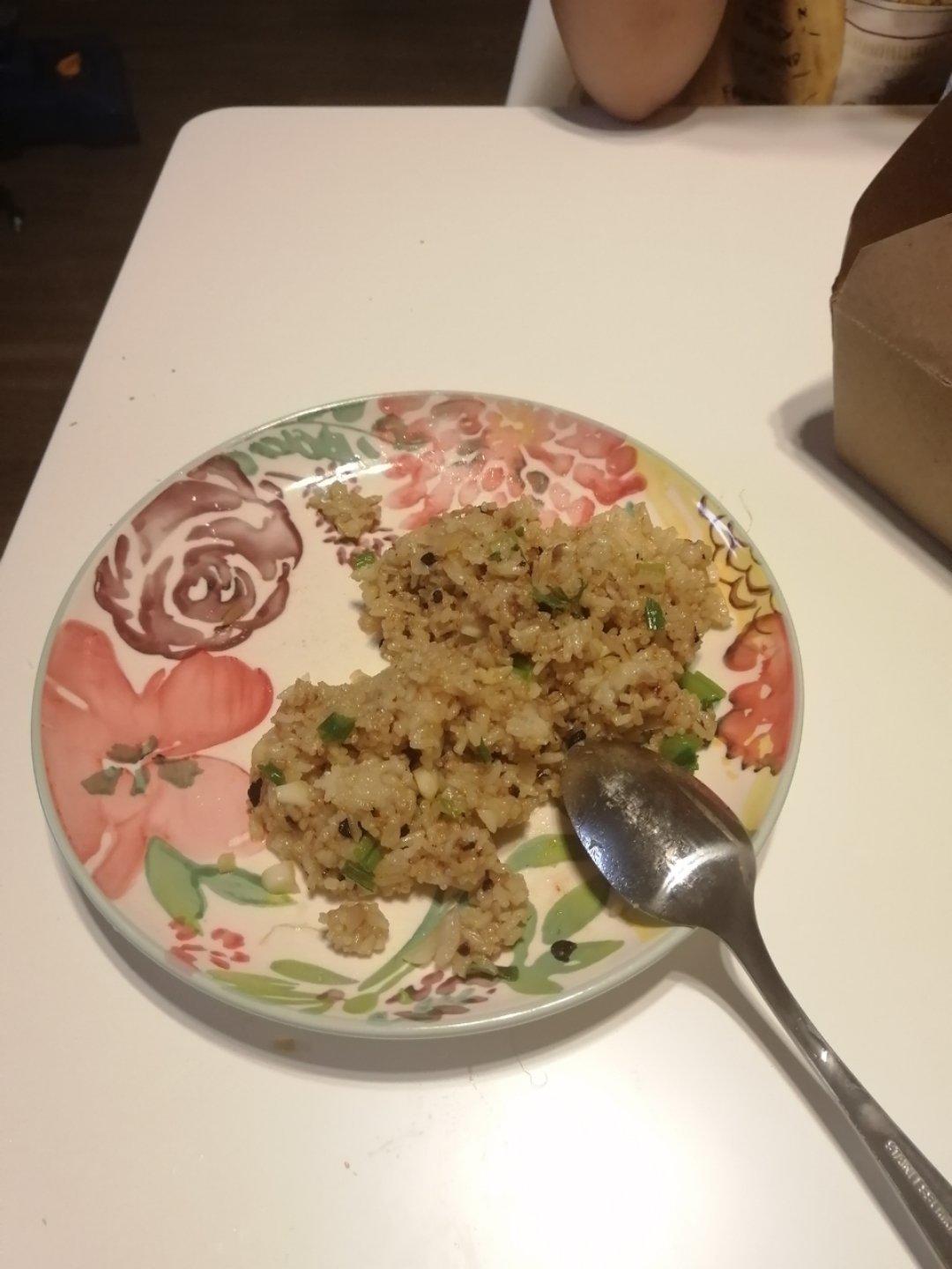 老干妈炒饭:味道还不错 就是米饭做的不够好 都黏在一起 炒起来好困难