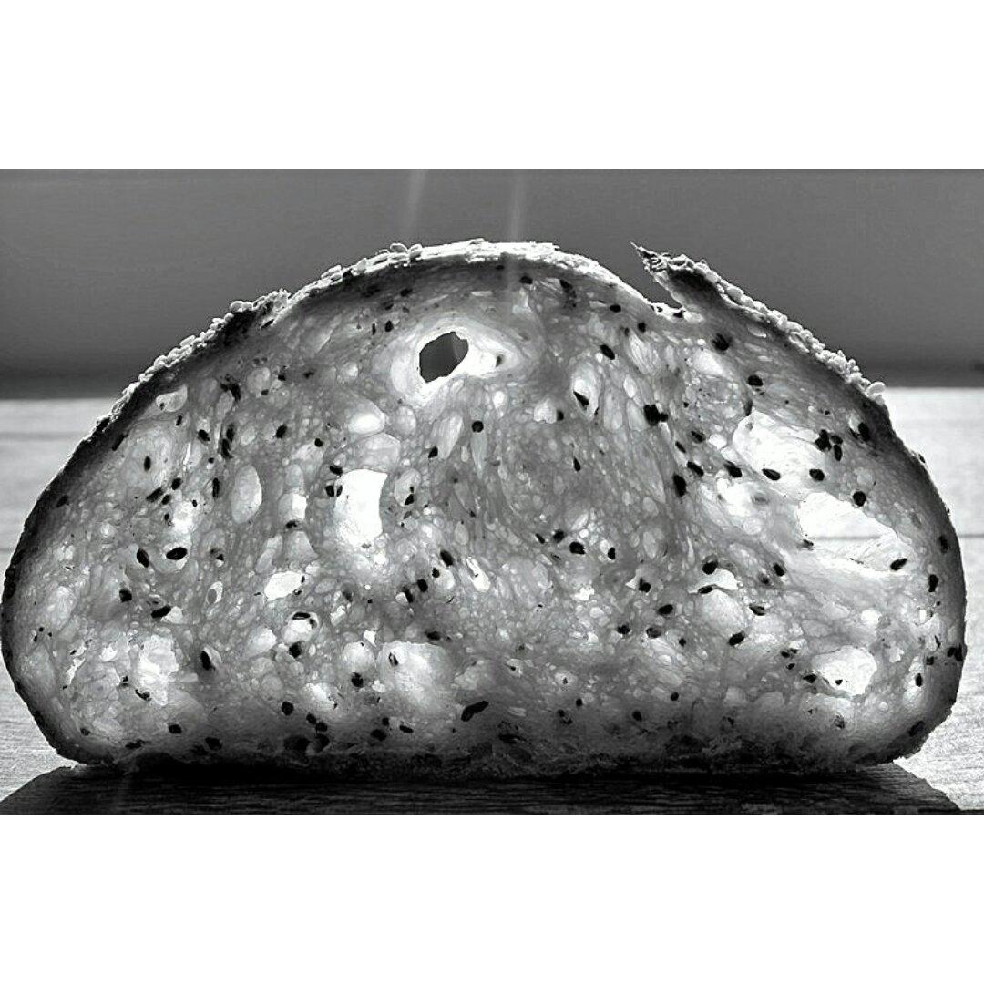 藏在新的bread box里面,今早打开密封袋,一头扎进袋子里去,过了一夜更香了。很友好的天然酵种酸香,适合入门选手,吃...