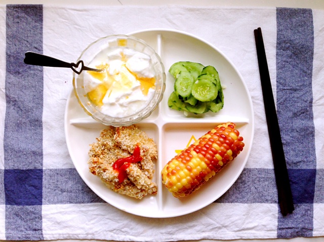 早餐:烤鸡胸 希腊酸奶 玉米 凉拌黄瓜