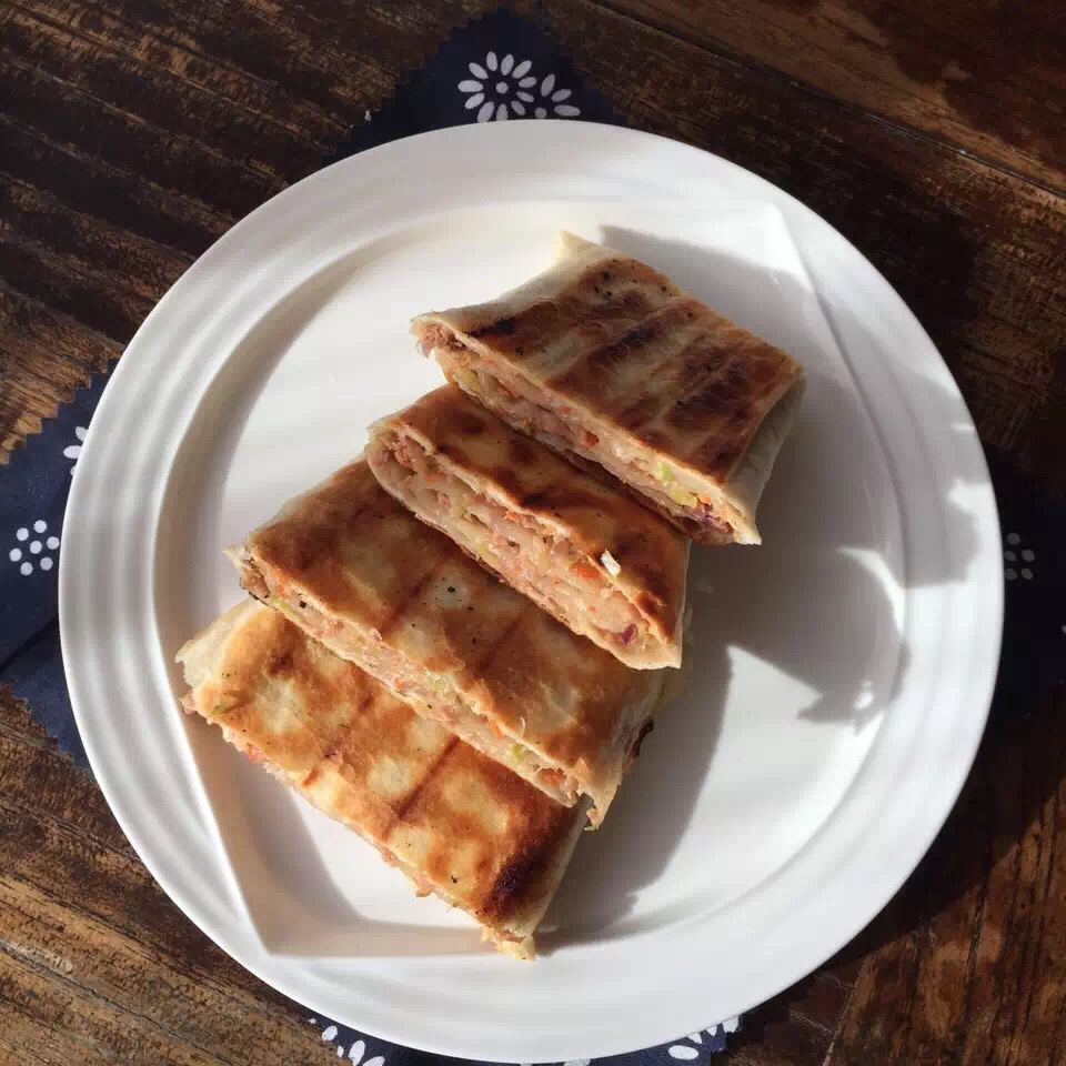 是昨晚的牛肉馅儿,早上另外和了面(50%含水)换个口感,撒了大量的黑胡椒碎,变个做法,更简单,你看懂没...