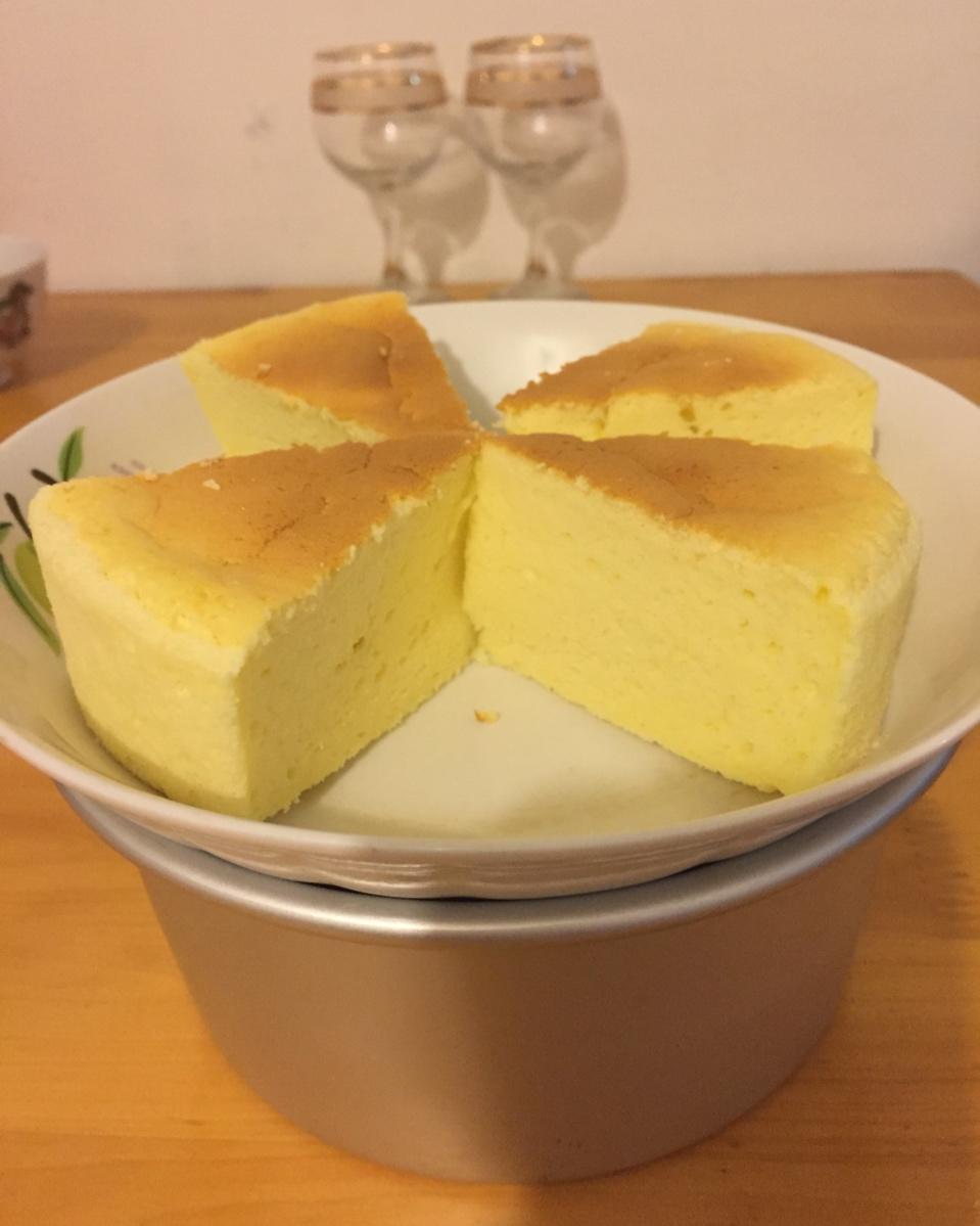 家里烤箱温度偏高,第一次用水浴法做可能温度还没掌握好,蛋糕心有点实蓬松度差了点,在继续加油💪😄