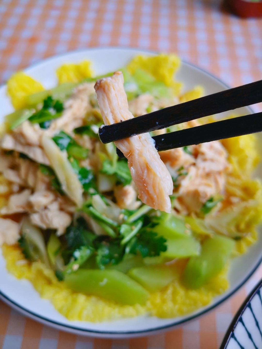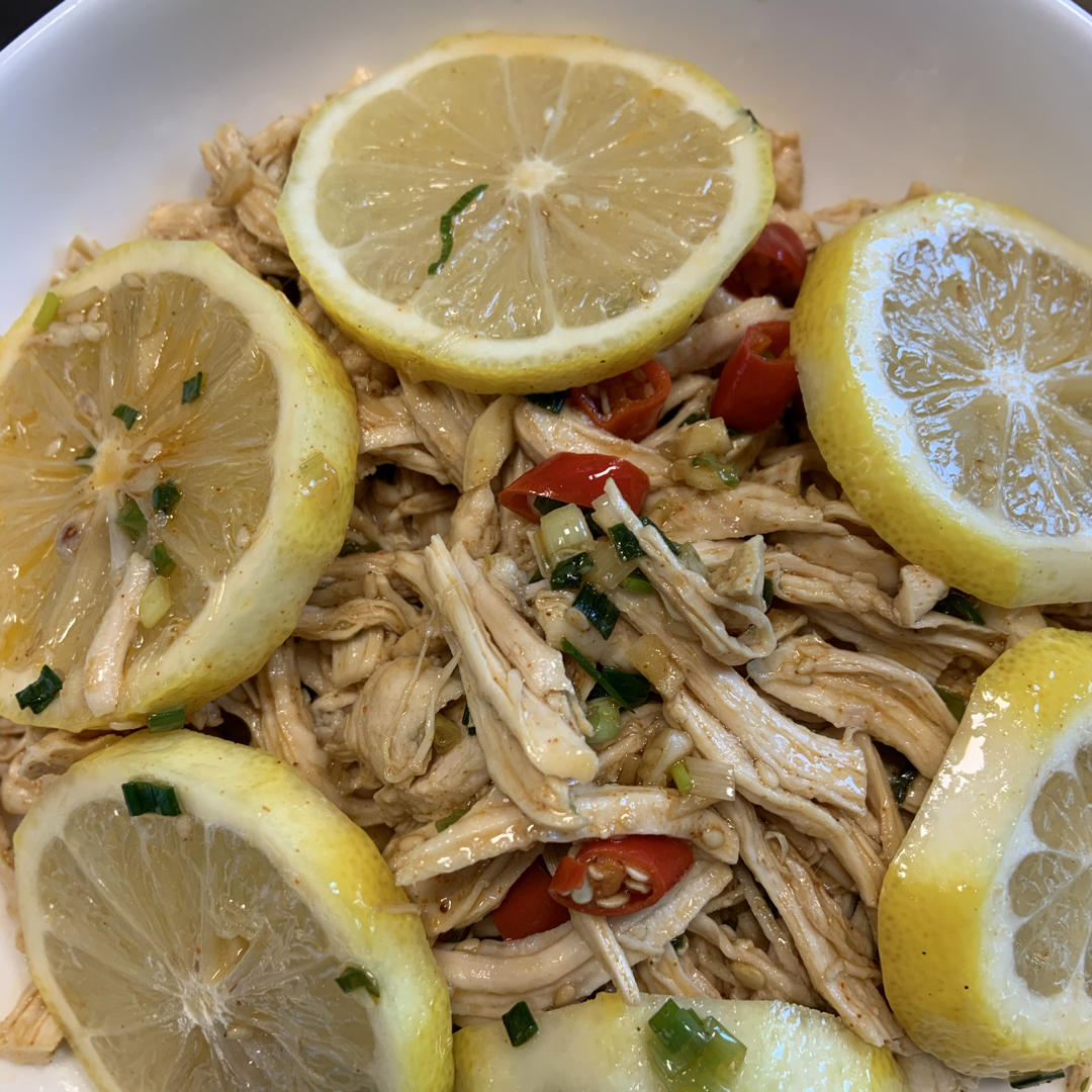 交作业啦!手撕鸡胸肉撕烦了,🍋切得比较随意,哈哈哈~好吃