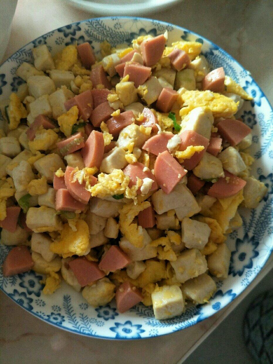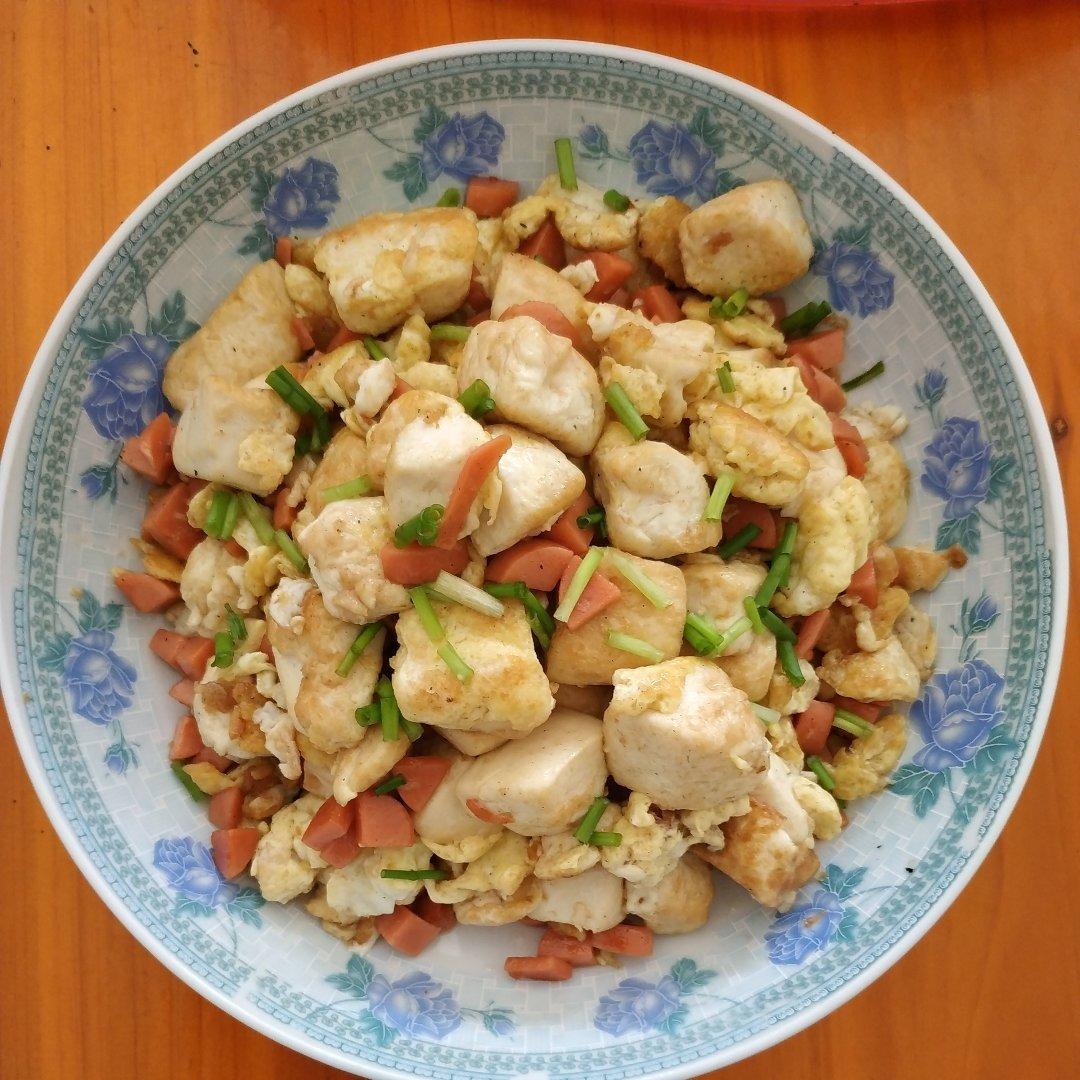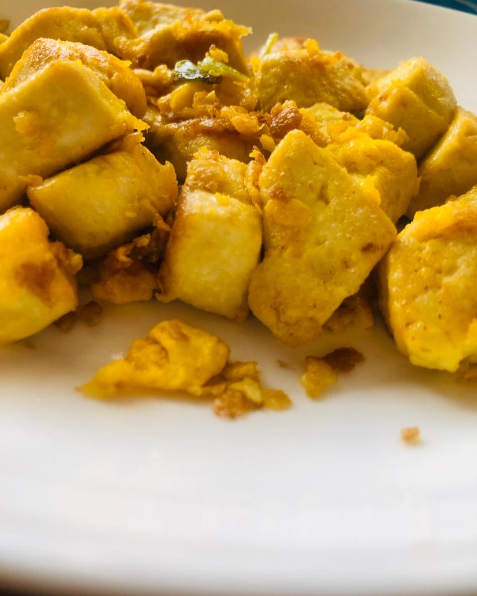 今天做了蛋包豆腐丁,做法简单易上手,材料也简单,我的做法比较粗暴,就是豆腐在加了盐和料酒的滚水里焯了过后下油锅炒到发黄加...