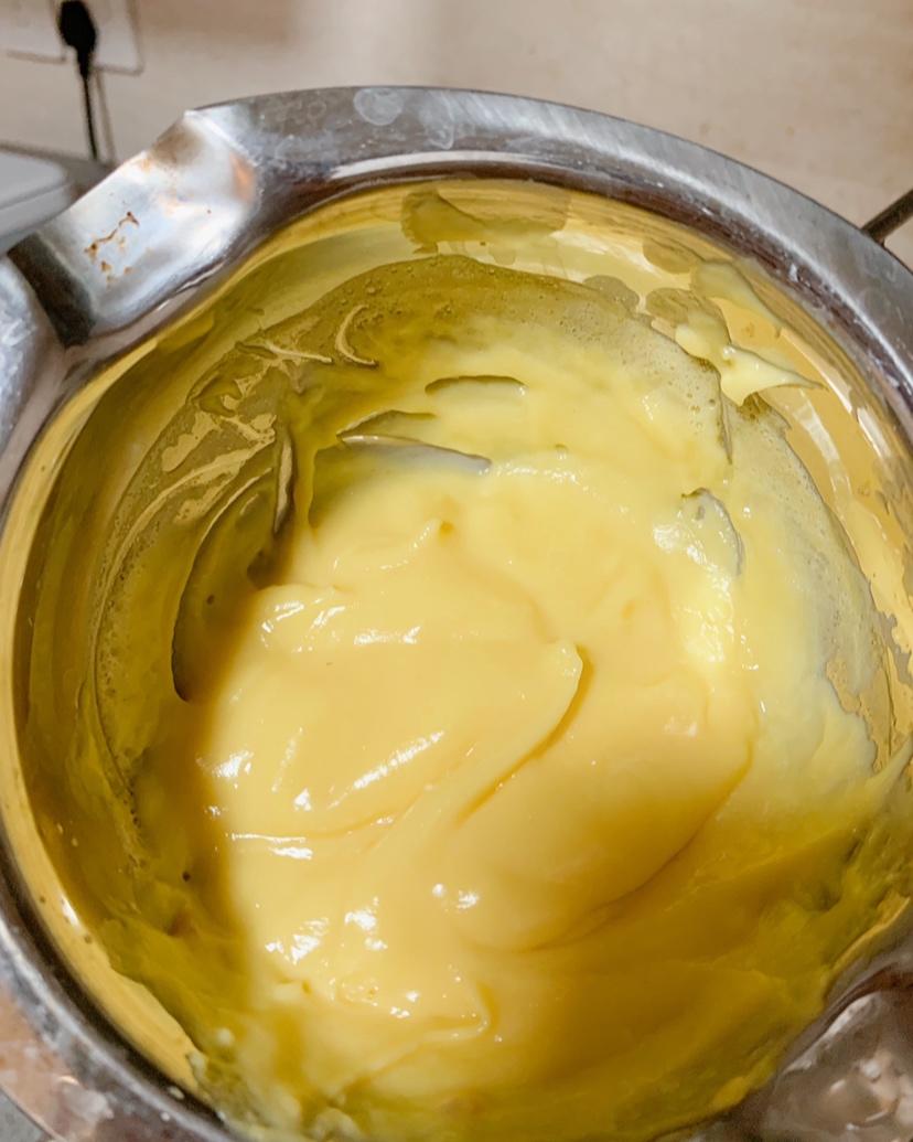 方子除以3,做一个蛋黄一顿吃完的量,夹在了肉松蛋糕里。略浓稠,下次可以少点粉。